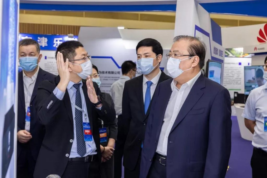 河北省工信廳總經(jīng)濟師劉云鑫,市委書記楊曉和,市委副書記、市長楊燕偉,市委常委、常務(wù)副市長張海川,市委常委、秘書長張平,市政協(xié)副主席、市政府秘書長李清濤在廊坊臨空經(jīng)濟區(qū)分會場參加開幕式。開幕式前,楊曉和楊燕偉等參觀了廊坊數(shù)字經(jīng)濟成果展。